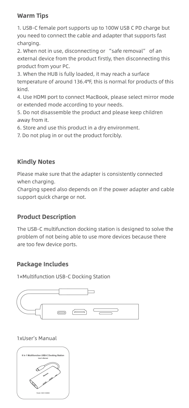 8 in 1 USB-C Docking Station 2025-05-21 by Customer Product Manual 8 in 1 USB-C Docking StationDownload