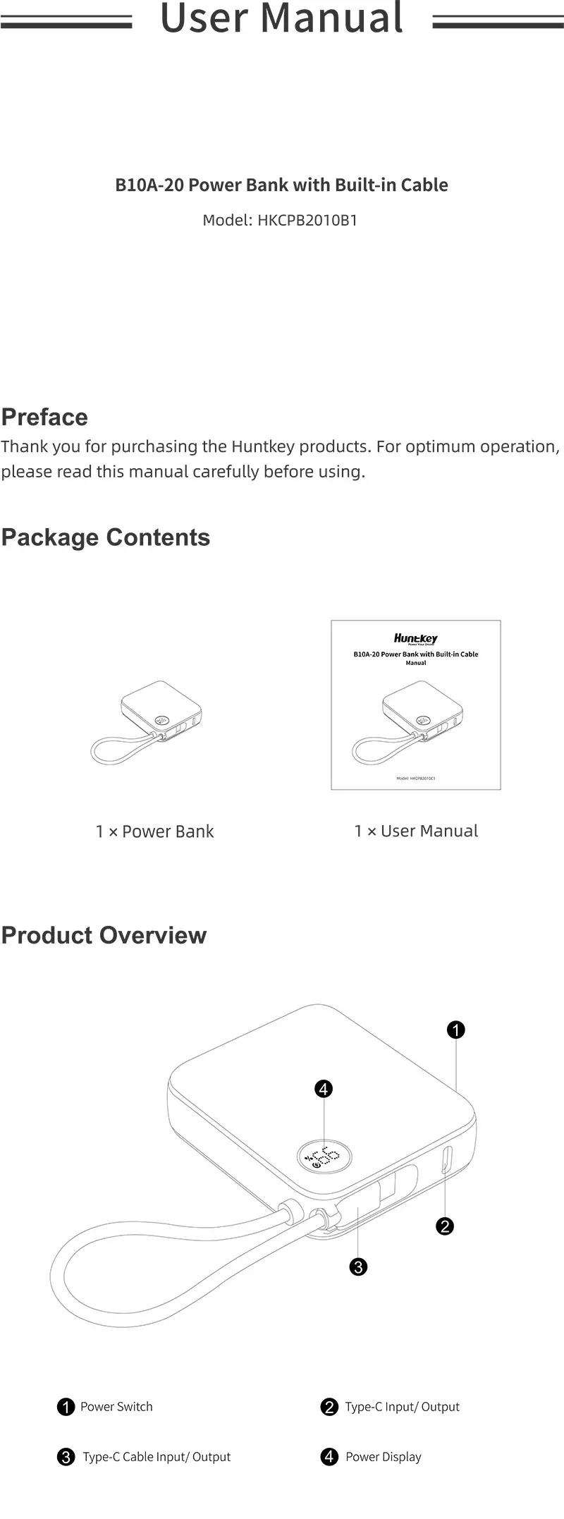 B10A-20 Power Bank with Built-in Cable 2025-06-18 by Customer Product Manual B10A-20 Power Bank with Built-in CableDownload