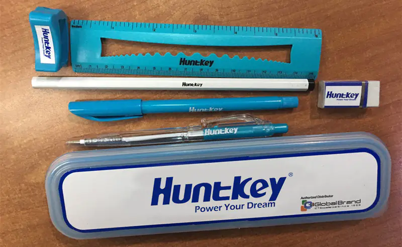 The gift for the promotion is an eight-piece stationery set, including a ballpoint pen, a marker, a pencil, a pencil sharpener, a ruler, an eraser and a stationery case. Customers that purchase designated Huntkey product models can get the eight-piece stationery set free.