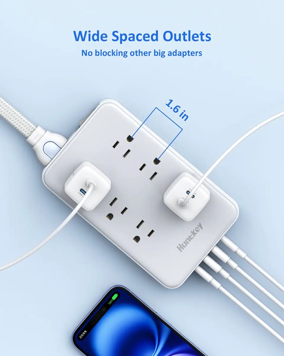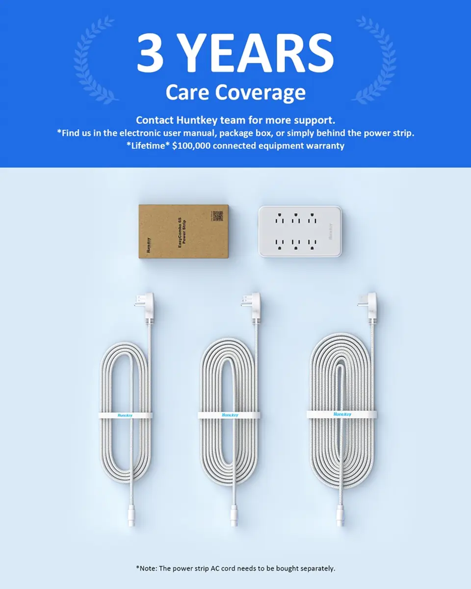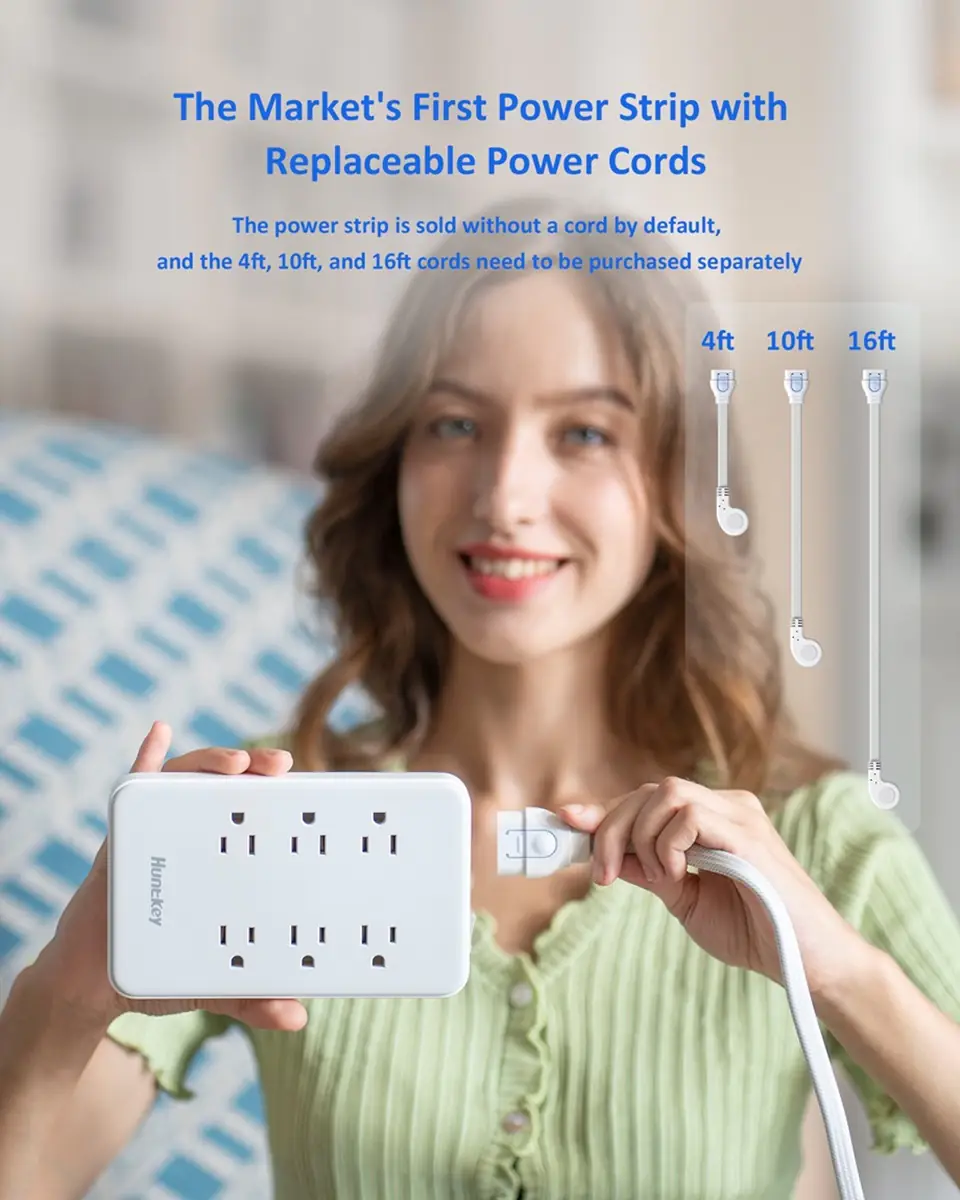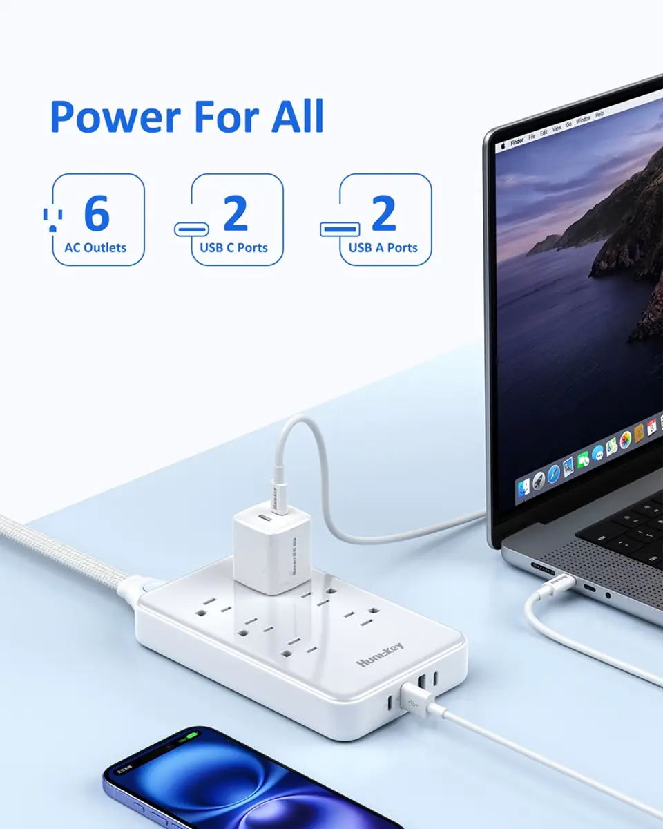 The Huntkey Easycombo 6S is the market’s first power strip with a detachable power cord design. By separating the strip and the cord, it lets users mix and match different cord lengths with ease, offering greater flexibility for any environment. With 6 AC outlets, 2 USB-A, and 2 USB-C ports, it delivers smart, simultaneous charging for up to 10 devices. Practical and portable, the Easycombo 6S is designed to simplify your power needs—at home or on the go.