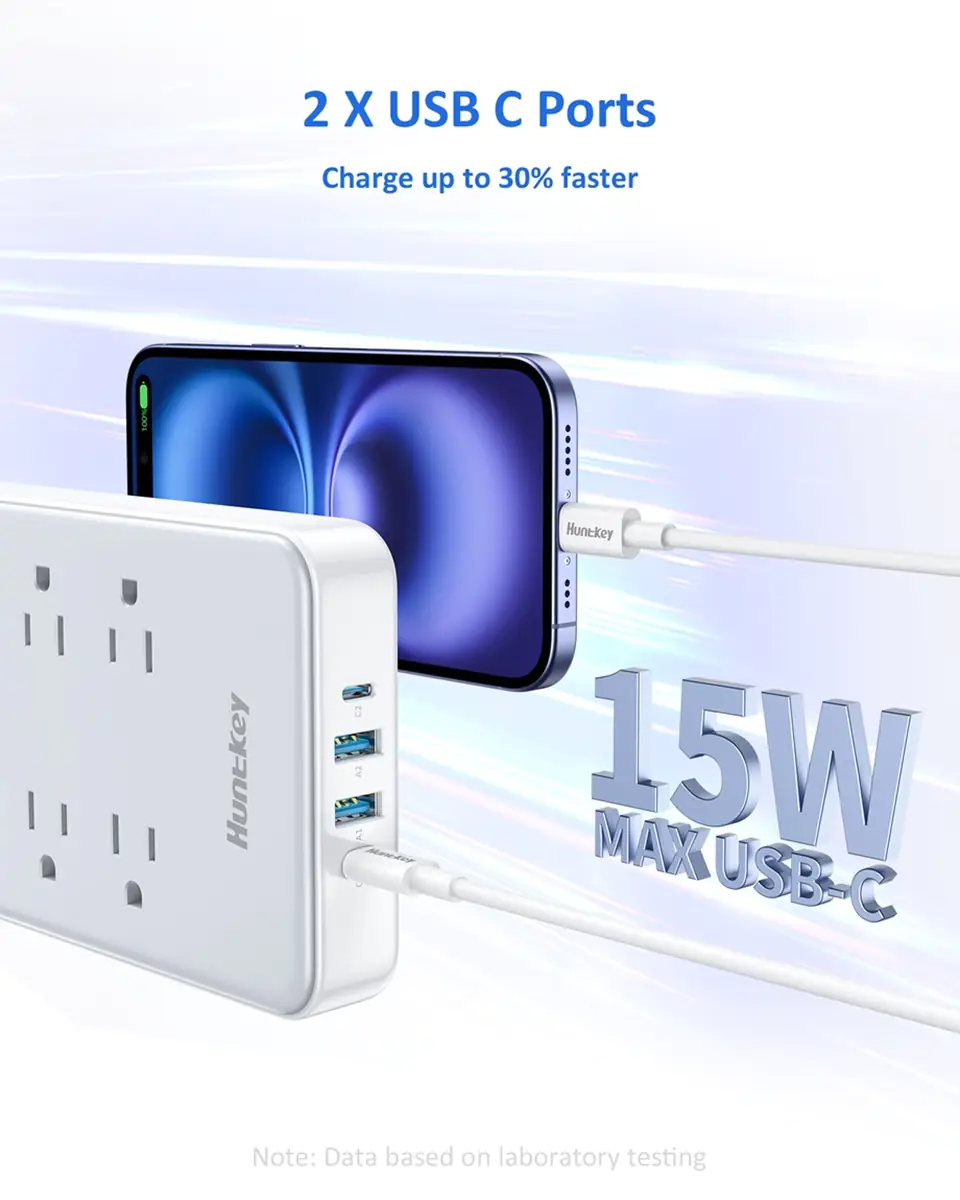 • All-in-One Charging Hub – 6 AC outlets + 4 USB ports (2 USB-C+2 USB-A),Total 15W.