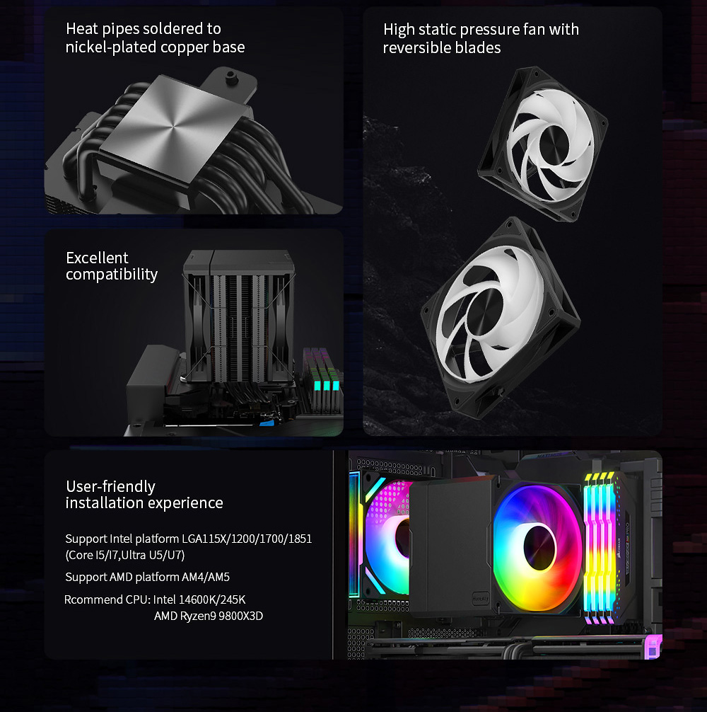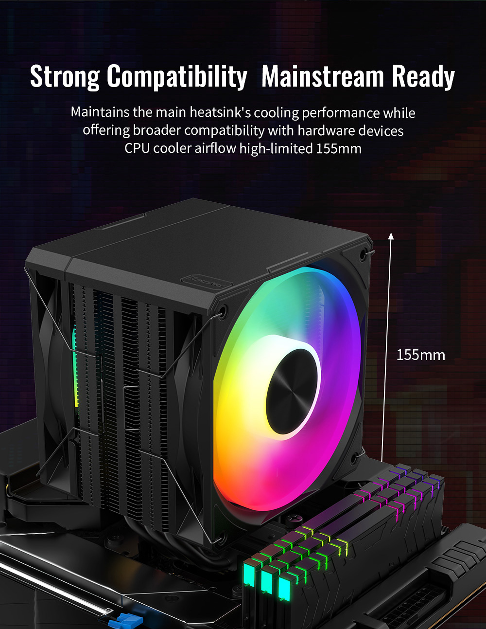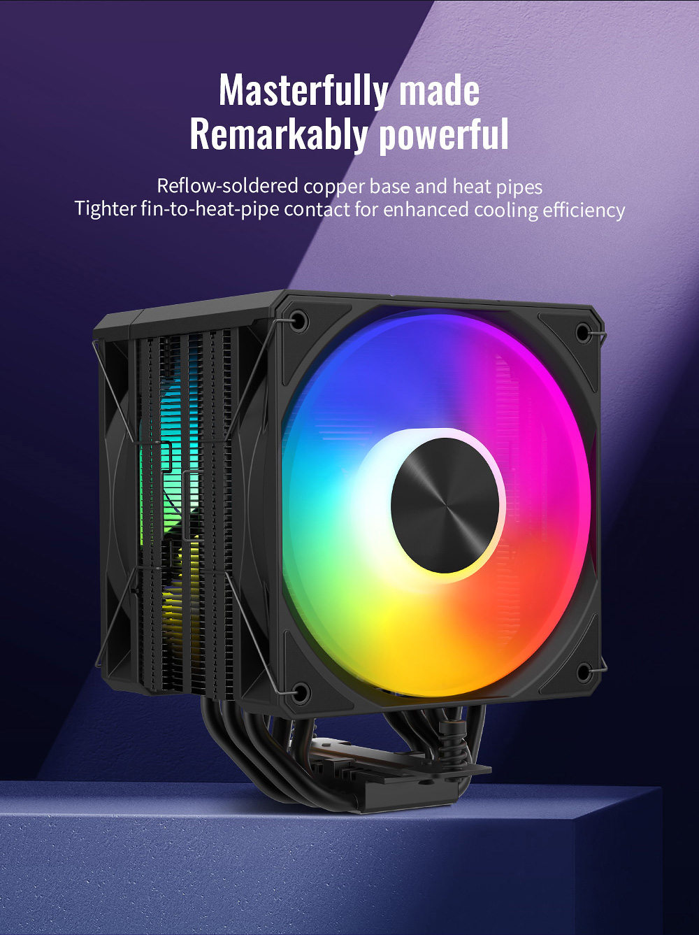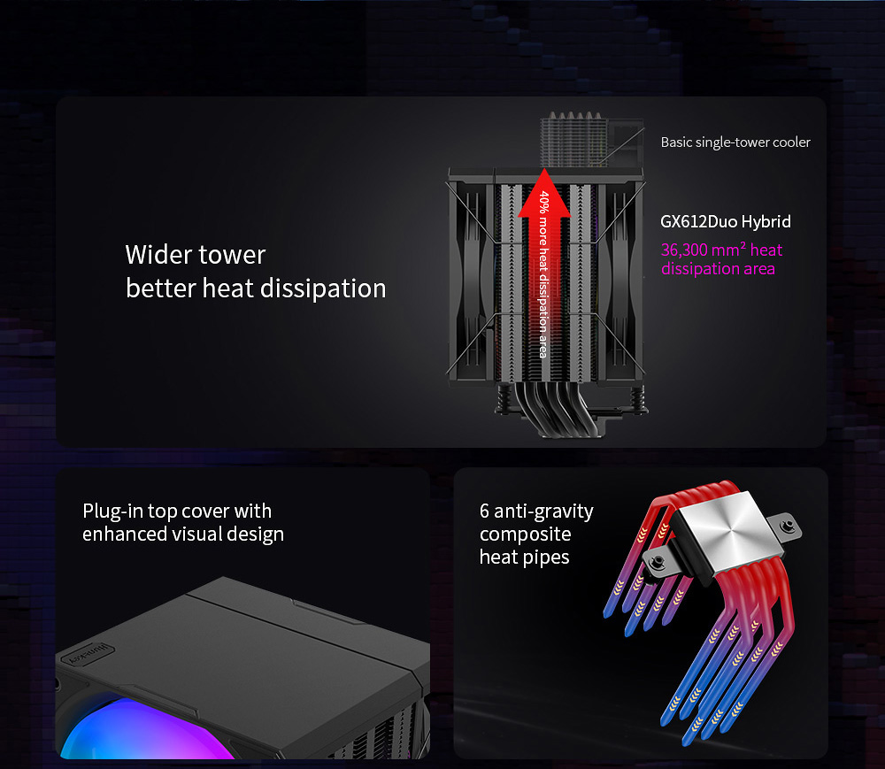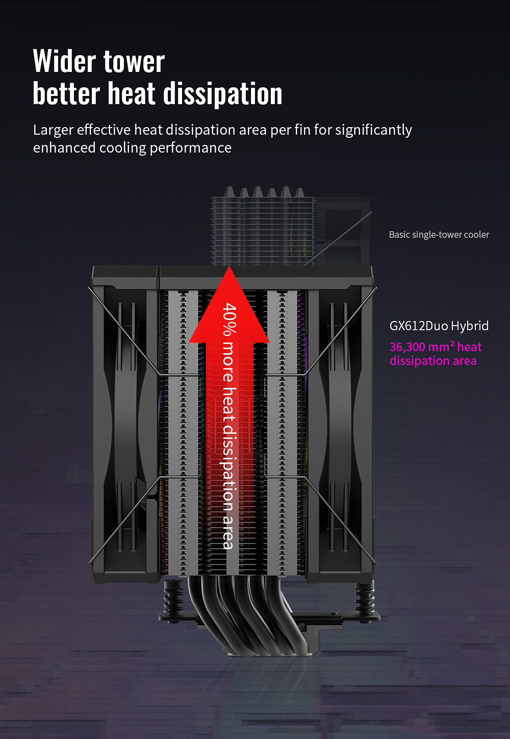 1.6 heat-pipes, thick tower, dual fans Real cooling requires real airflow
