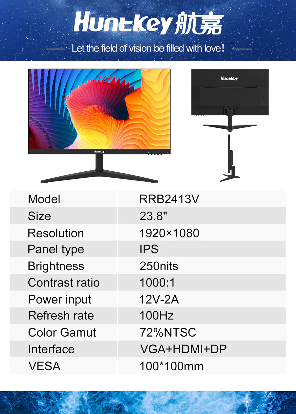 HuntKey RRB2413V monitor, FHD 178° wide viewing Angle;