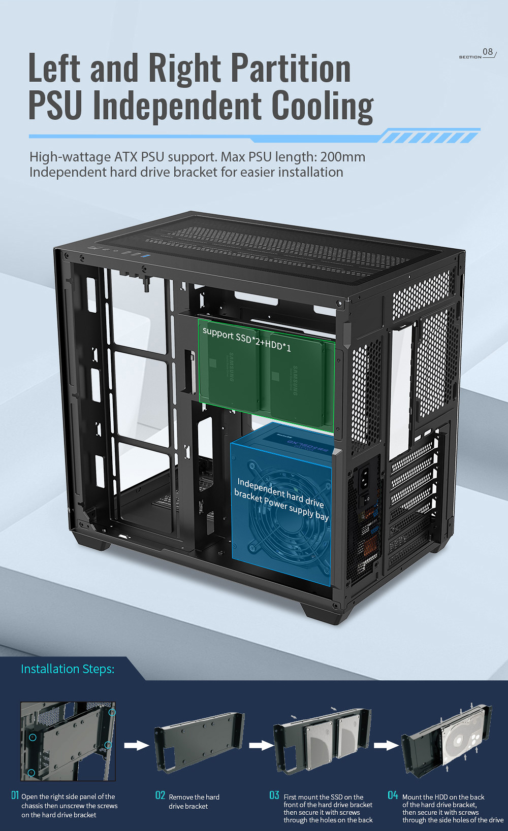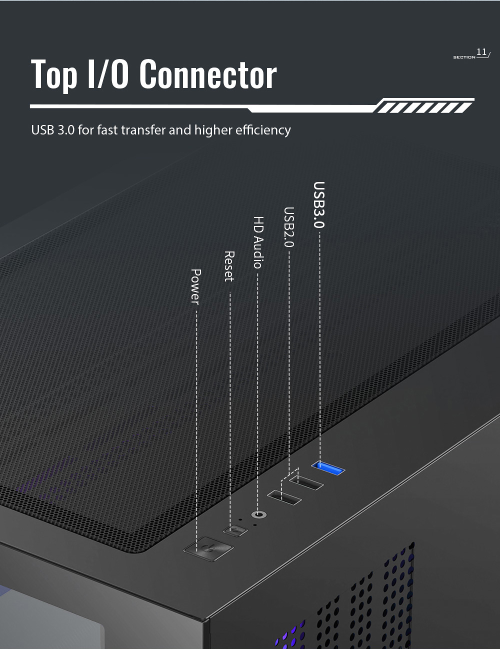 2.Support ATX M/B,compatible with VGA card with 3 fans