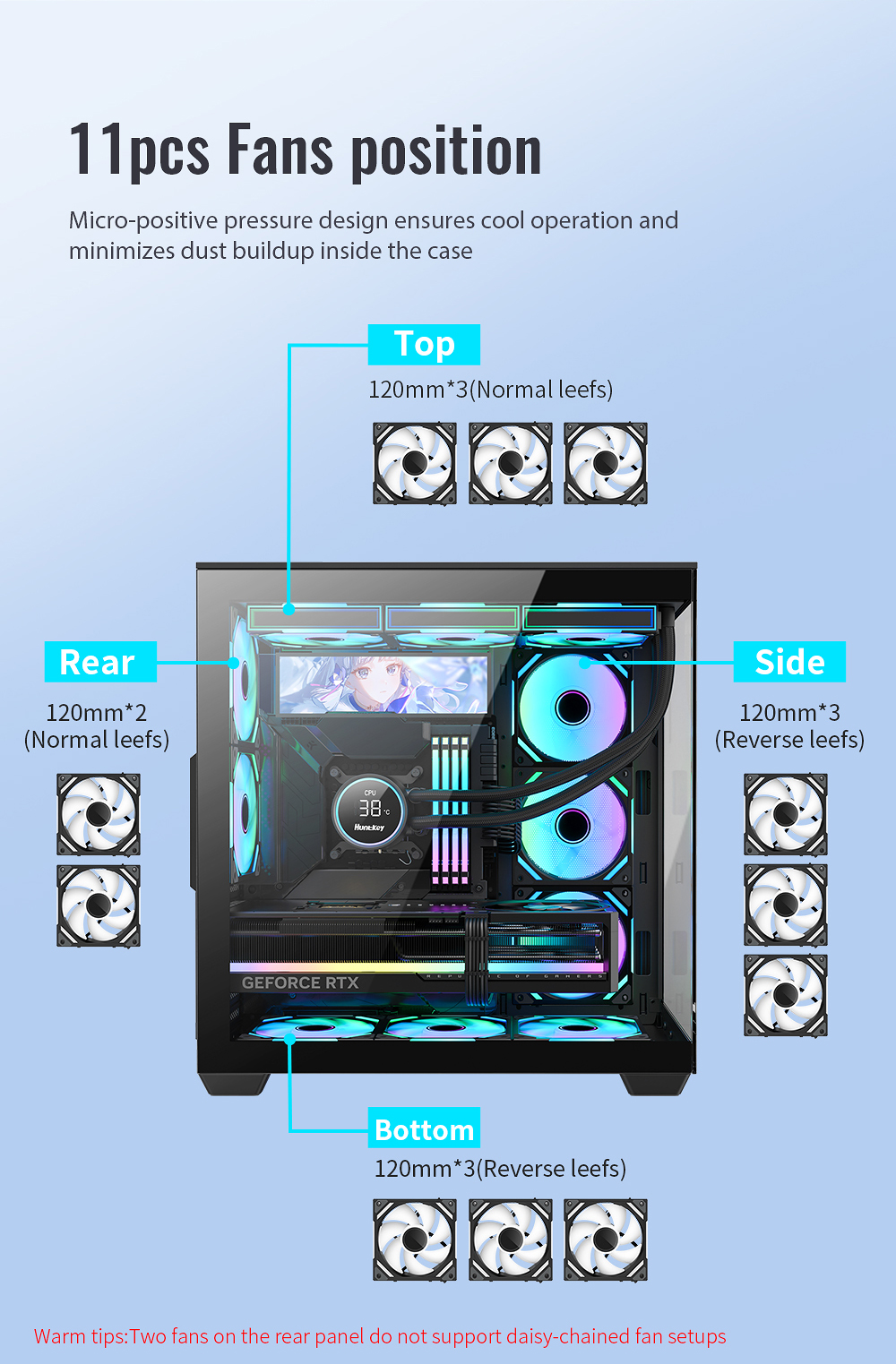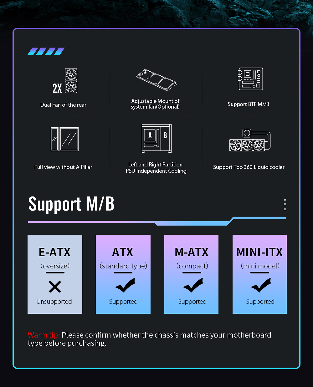 4.Support dual fan mount at the rear