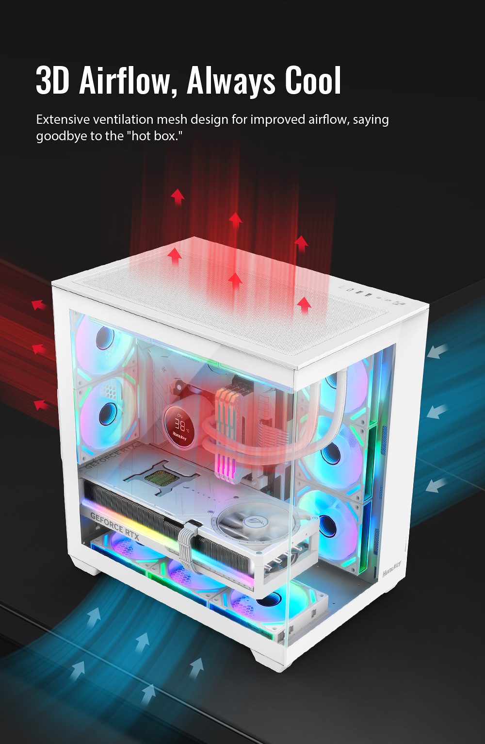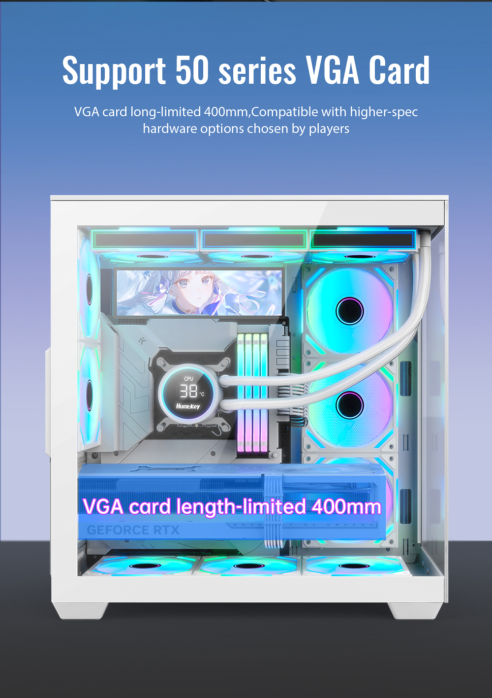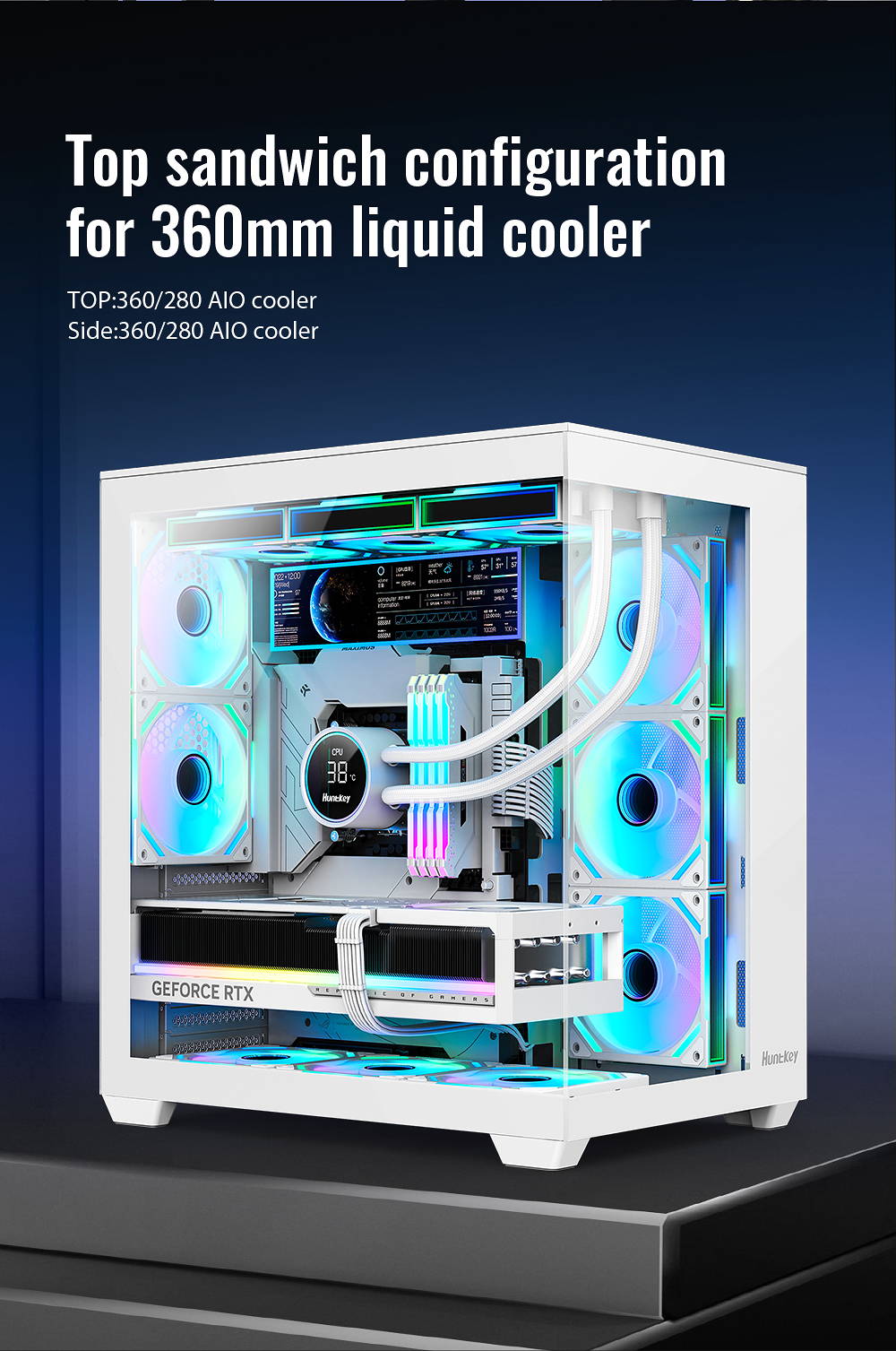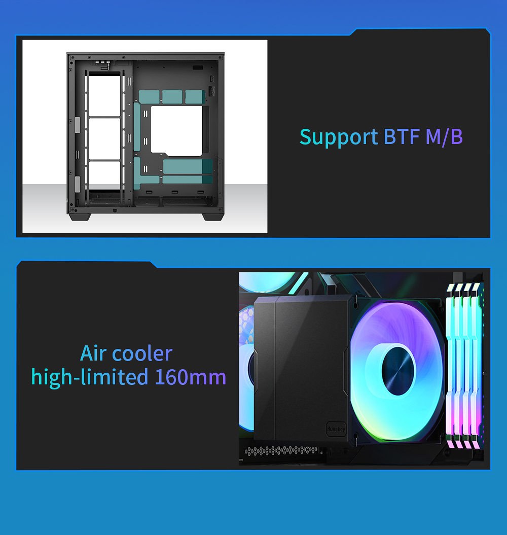 5.Support dual 360 liquid cooler top or side