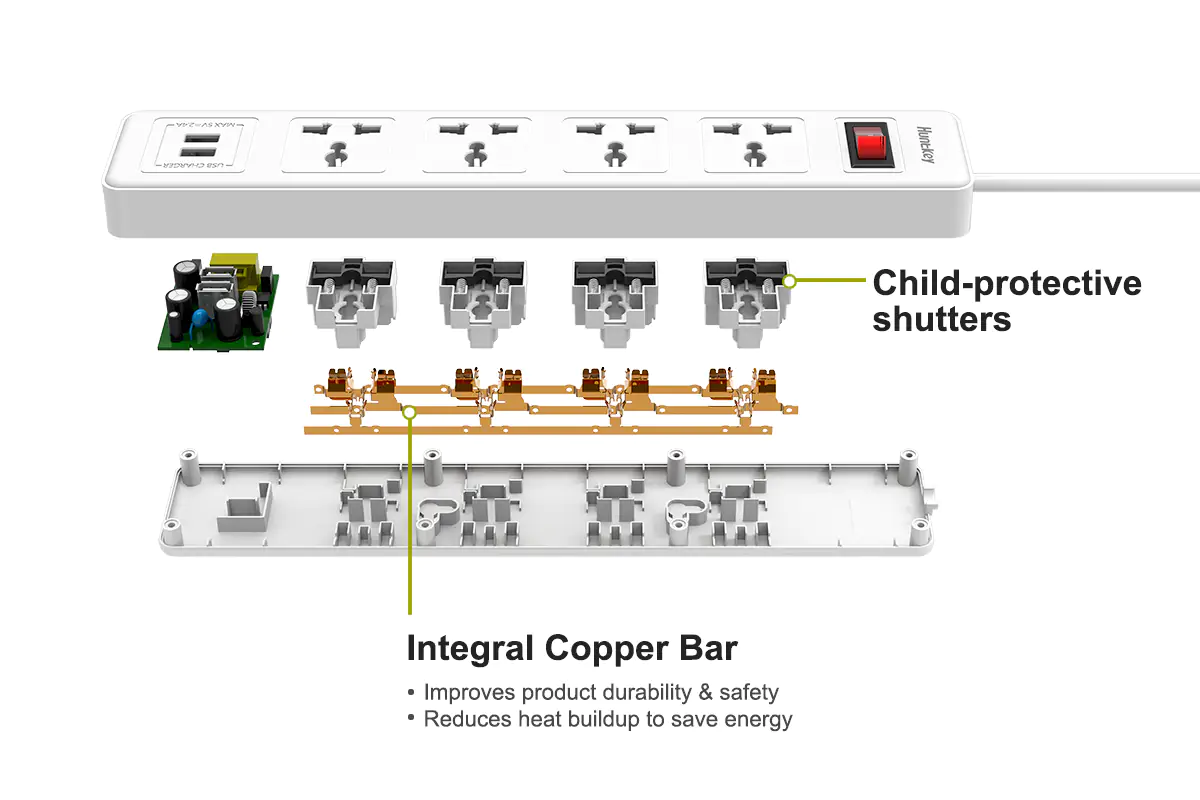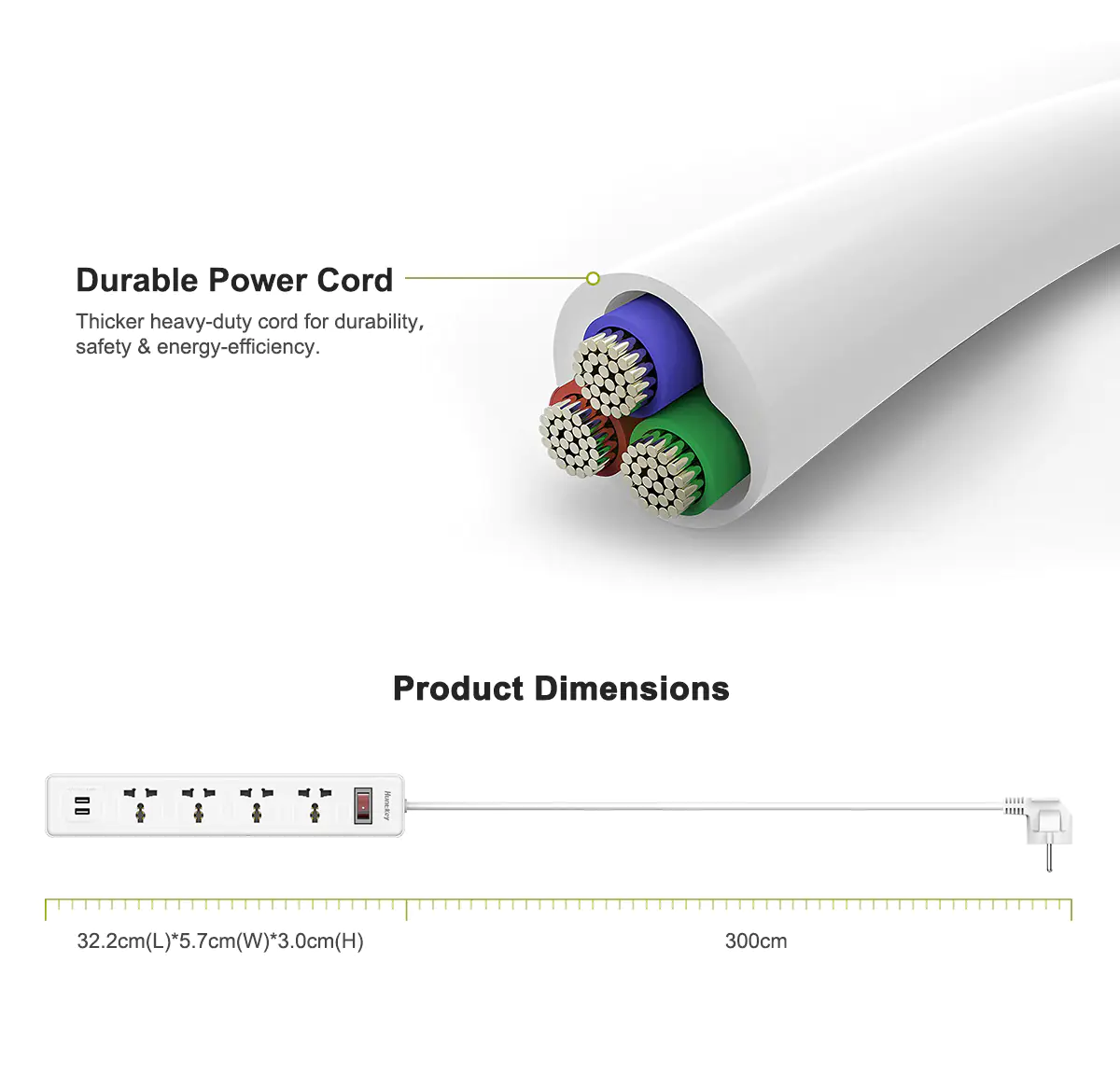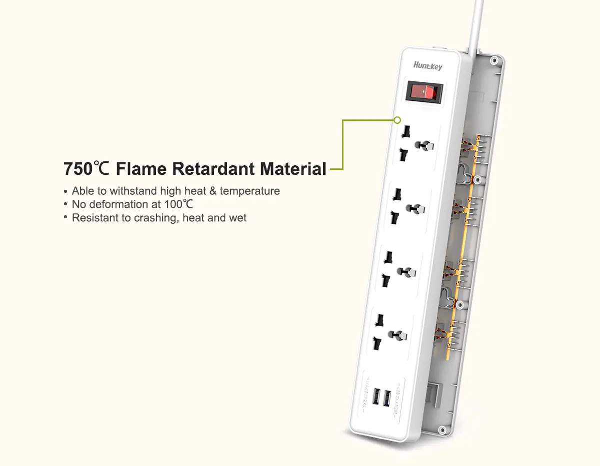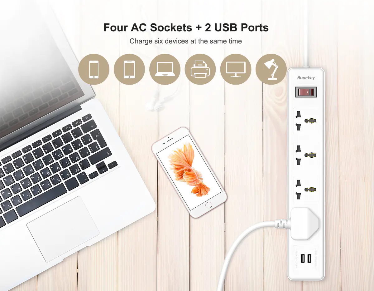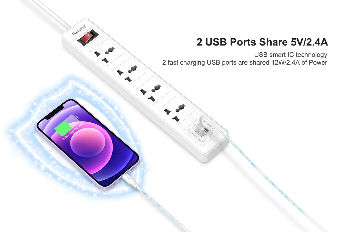 • 4 Universal AC outlets +2USB-A(total 5V2.4A)