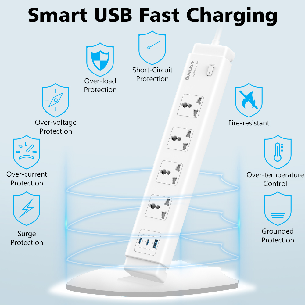 • 4 Universal AC ,1 USB-A and 2 USB-C (Total PD20W)
